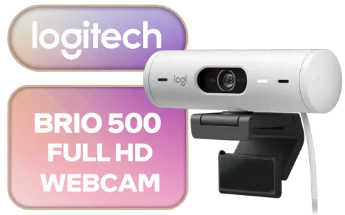 Logitech Brio 500 Full HD Webcam with Auto Light Correction,Show Mode, Dual Noise Reduction Mics, Webcam Privacy Cover, Works with Microsoft Teams, Google Meet, Zoom, USB-C Cable - Off White / 960-001428 + FREE DELIVERY !