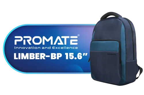 Promate Limber-BP Large Capacity Backpack - Blue / For up to 15.6” Laptops / Multiple Compartments / Padded Mesh Shoulder Straps / Limber-BP.Blue / Limber-BP.Blue