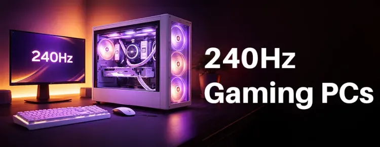 Experience ultra-smooth gameplay with 240Hz gaming PCs designed for competitive gamers and high-FPS enthusiasts. These systems combine powerful CPUs, top-tier GPUs, fast RAM, and NVMe SSDs to deliver minimal input lag, razor-sharp motion clarity, and consistent frame rates for FPS, esports, and fast-action titles. 🔥