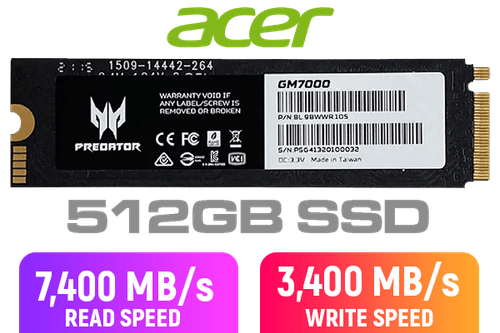 Acer Predator GM7000 512GB NVMe Gaming SSD - M.2 2280 PCIe Gen4 (16 Gb/s) x 4, 3D TLC NAND PC Internal Solid State Hard Drive with DDR4 DRAM Cache Up to 7400 MB/s - BL.9BWWR.104 / BL.9BWWR.104
