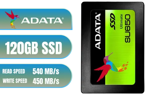 ADATA SU650 120GB 3D-NAND 2.5" High Speed Internal Solid State Drive / For Notebooks And Desktops / Read/Write up to 520/450MB Per Second / Support For Error Correction Code / AD-SSDSU6501-120GB-1 / AD-SSDSU6501-120GB-1
