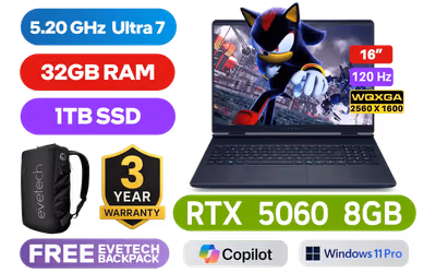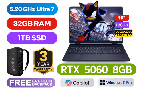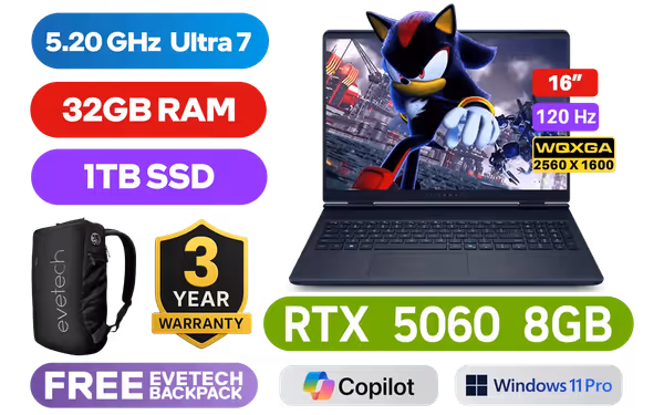 Alienware 16x Aurora AC16251 1625-5429 Intel® Core™ Ultra 7-255HX up to 5.20GHz Processor, 66MB Cache, 20x Cores, 20x Threads / 32GB DDR5 RAM / 1TB Ultra-Fast NVME SSD / 16" WQXGA (2560 x 1600) 120Hz, Anti-Glare Display / NVIDIA 50 Series GeForce RTX 5060 8GB GDDR7 Graphics Card / 1080p FHD Camera / <span style="font-size: 20px; color: #00BFFF; font-weight: bold;">Windows 11 Professional (64bit)</span> / Realtek Wi-Fi 7 MT7925 Wireless LAN / Bluetooth 5.4 / Full Size RGB Backlit Keyboard / 2x USB Type-A / 2x USB Type-C (Thunderbolt 4, DisplayPort 2.1) / 1x HDMI 2.1 / RJ-45 / 1x Microphone and Headphone Combo Jack / Realtek AL3204 Audio / Alienware 16x Aurora AC16251 Intel® Core™ Ultra 7 Laptop DealAlienware 16x Aurora AC16251 1625-5429 Intel® Core™ Ultra 7-255HX up to 5.20GHz Processor, 66MB Cache, 20x Cores, 20x Threads / 32GB DDR5 RAM / 1TB Ultra-Fast NVME SSD / 16" WQXGA (2560 x 1600) 120Hz, Anti-Glare Display / NVIDIA 50 Series GeForce RTX 5060 8GB GDDR7 Graphics Card / 1080p FHD Camera / Windows 11 Professional (64bit) / Realtek Wi-Fi 7 MT7925 Wireless LAN / Bluetooth 5.4 / Full Size RGB Backlit Keyboard / 2x USB Type-A / 2x USB Type-C (Thunderbolt 4, DisplayPort 2.1) / 1x HDMI 2.1 / RJ-45 / 1x Microphone and Headphone Combo Jack / Realtek AL3204 Audio / Alienware 16x Aurora AC16251 Intel® Core™ Ultra 7 Laptop Deal [NBDEAC16251U732111PE] / [+] GET FREE EVETECH NEO Premium Gaming Backpack / 3 YEARS WARRANTY + FREE DELIVERY !