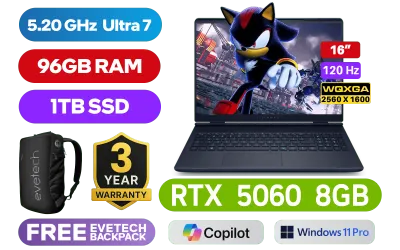 Alienware 16x Aurora AC16251 1625-5429 Intel® Core™ Ultra 7-255HX up to 5.20GHz Processor, 66MB Cache, 20x Cores, 20x Threads / 96GB DDR5 RAM / 1TB Ultra-Fast NVME SSD / 16" WQXGA (2560 x 1600) 120Hz, Anti-Glare Display / NVIDIA 50 Series GeForce RTX 5060 8GB GDDR7 Graphics Card / 1080p FHD Camera / <span style="font-size: 20px; color: #00BFFF; font-weight: bold;">Windows 11 Professional (64bit)</span> / Realtek Wi-Fi 7 MT7925 Wireless LAN / Bluetooth 5.4 / Full Size RGB Backlit Keyboard / 2x USB Type-A / 2x USB Type-C (Thunderbolt 4, DisplayPort 2.1) / 1x HDMI 2.1 / RJ-45 / 1x Microphone and Headphone Combo Jack / Realtek AL3204 Audio / Alienware 16x Aurora AC16251 Intel® Core™ Ultra 7 Laptop DealAlienware 16x Aurora AC16251 1625-5429 Intel® Core™ Ultra 7-255HX up to 5.20GHz Processor, 66MB Cache, 20x Cores, 20x Threads / 96GB DDR5 RAM / 1TB Ultra-Fast NVME SSD / 16" WQXGA (2560 x 1600) 120Hz, Anti-Glare Display / NVIDIA 50 Series GeForce RTX 5060 8GB GDDR7 Graphics Card / 1080p FHD Camera / Windows 11 Professional (64bit) / Realtek Wi-Fi 7 MT7925 Wireless LAN / Bluetooth 5.4 / Full Size RGB Backlit Keyboard / 2x USB Type-A / 2x USB Type-C (Thunderbolt 4, DisplayPort 2.1) / 1x HDMI 2.1 / RJ-45 / 1x Microphone and Headphone Combo Jack / Realtek AL3204 Audio / Alienware 16x Aurora AC16251 Intel® Core™ Ultra 7 Laptop Deal [NBDEAC16251U732111PE/96GB] / [+] GET FREE EVETECH NEO Premium Gaming Backpack / 3 YEARS WARRANTY + FREE DELIVERY !