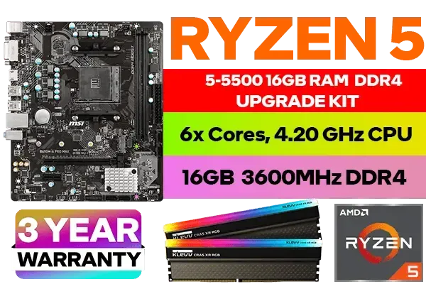 AMD Ryzen 5 5500 B450M A PRO MAX Upgrade Kit | 16GB RGB 3600MHz | Evetech