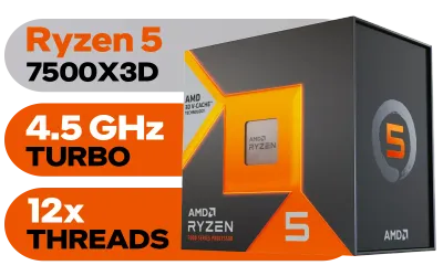 AMD Ryzen 5 7500X3D 6-Core 12-Threads 4.0GHz (4.5GHz Max Boost) Socket AM5 65W Desktop Processor / 102MB 3D V-Cache / AMD Ryzen 7000 Series Desktop Processor / No CPU Cooler Included / Integrated AMD Radeon Graphics / 100-100001904WOF