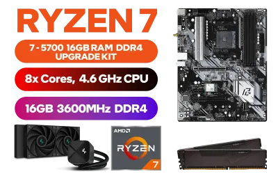 AMD RYZEN 7 5700 Phantom Gaming B550 16GB 3200MHz Upgrade Kit - ASRock Phantom Gaming B550 AMD ATX Motherboard + AMD RYZEN 7 5700 20MB Game Cache Up to 4.6GHz CPU + KLEVV BOLT X 32GB 3600MHz DDR4 Desktop Memory + DeepCool LS520S Zero Dark Liquid Cooler / Discrete GPU Required - No Integrated Graphics