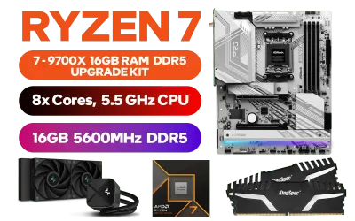 AMD RYZEN 7 9700X ASRock X870 PRO RS WIFI 16GB DDR5 5600MHz Upgrade Kit - ASRock X870 PRO RS WIFI AMD Ryzen Motherboard + AMD RYZEN 7 9700X 40MB GameCache Up to 5.5GHz CPU (OEM No Packaging) + Kingspec 16GB Kit (16GB x1) 5600MHz Gaming Memory + DeepCool LS520S Dark Zero Liquid CPU Cooler