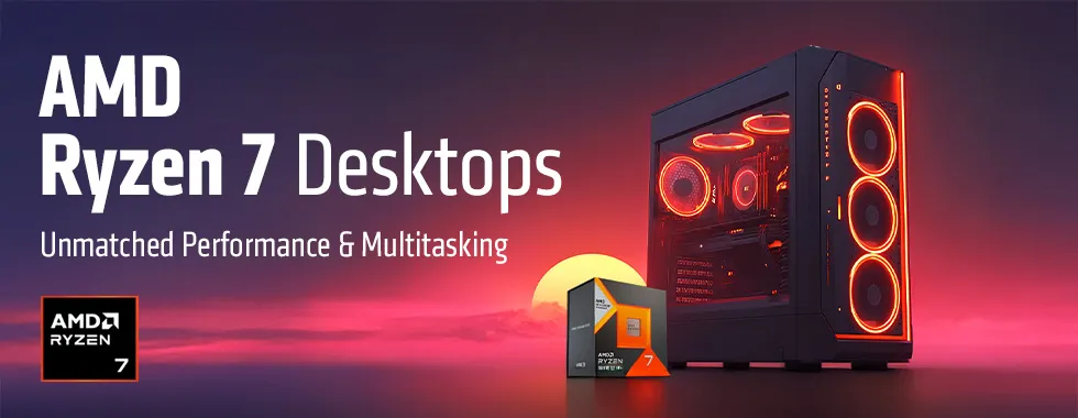 Experience unmatched performance and productivity with AMD Ryzen 7 PCs. Tackle demanding workloads, excel in multitasking, and unlock your creative potential with high-performance desktop computers. Ryzen 7 processors combine raw power, efficiency, and future-ready features, making them perfect for power users, content creators, and tech enthusiasts seeking a superior computing experience at an affordable price. 💪🎨