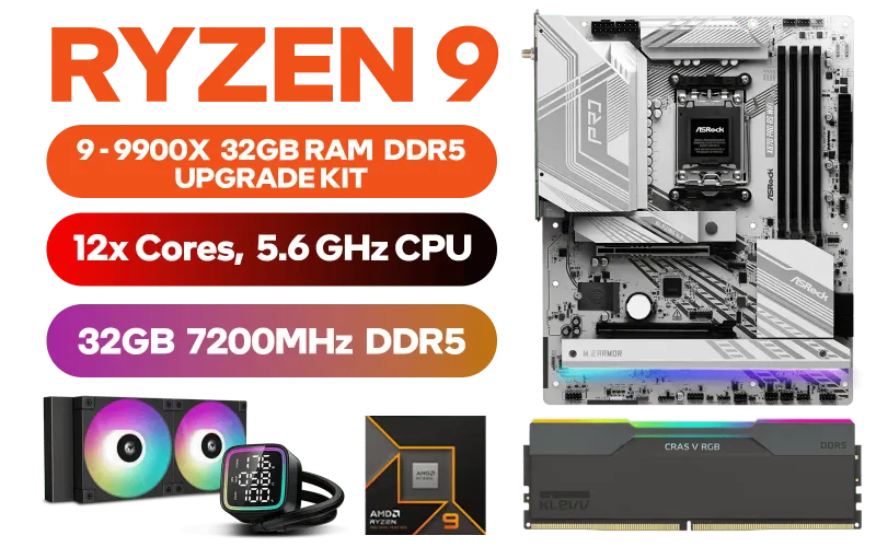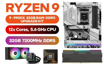 AMD RYZEN 9 9900X ASRock X870 PRO RS WIFI 32GB DDR5 7200MHz Upgrade Kit