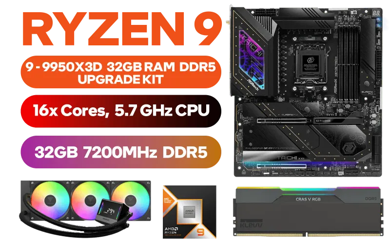 AMD RYZEN 9 9950X3D ASRock X870E Taichi WIFI 32GB DDR5 7200MHz Upgrade Kit