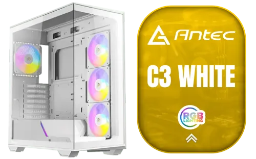 Antec C3 ARGB White - 3 x 120mm & 1 x 120mm ARGB PWM Fans Included - Up to 8 Fans Simultaneously - Type-C - Seamless Tempered Glass Front & Side Panels - 360mm Radiator Support - Mid-Tower ATX PC Case / 0-761345-10032-8 / 0-761345-10032-8
