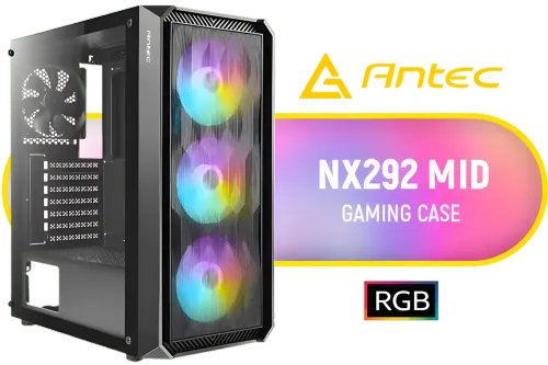 Antec NX292 Mid Tower Gaming Case / Windowed Side Panel / Supports Motherboards up to E-ATX / 3 x 120 mm RGB FANS INCLUDED / USB 3.0 Connectivity / Ample Storage Drive Bays / 0-761345-81006-7 / 0-761345-81006-7