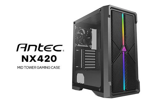 Antec NX420 Mid Tower Gaming Case / Tempered Glass Side Panel / LED Control Button / Creation of Value & Function / Supports up to 6 Fans / Graphics Card Support Up to 330 mm / CPU Cooler Support Up to 175 mm / 0-761345-81046-3 / 0-761345-81046-3