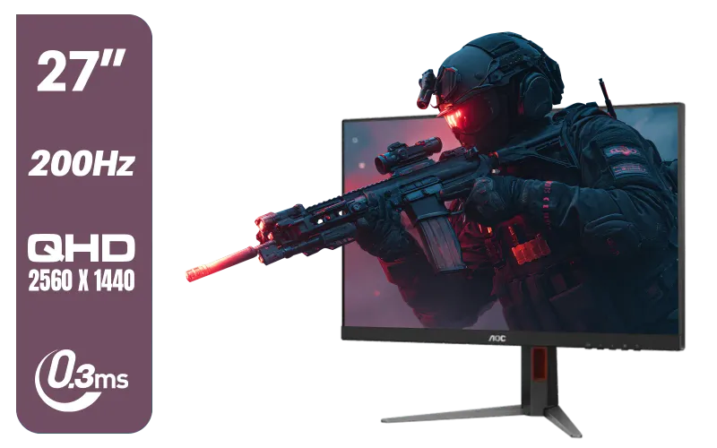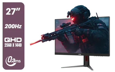 AOC Q27G4/D 27" Gaming Monitor / QHD (2560 × 1440) / 200Hz Refresh Rate / 0.3ms Response Time / IPS-Level Display / Certified HDR400 / Support Adaptive Sync / Q27G4/D