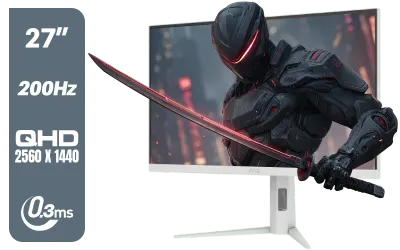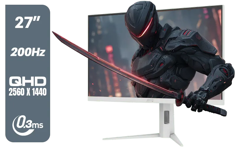 AOC Q27G4/WS 27" Gaming Monitor - White / QHD (2560 × 1440) / 200Hz Refresh Rate / 0.3ms Response Time / IPS-Level Display / Certified HDR400 / Support Adaptive Sync / Q27G4/WS