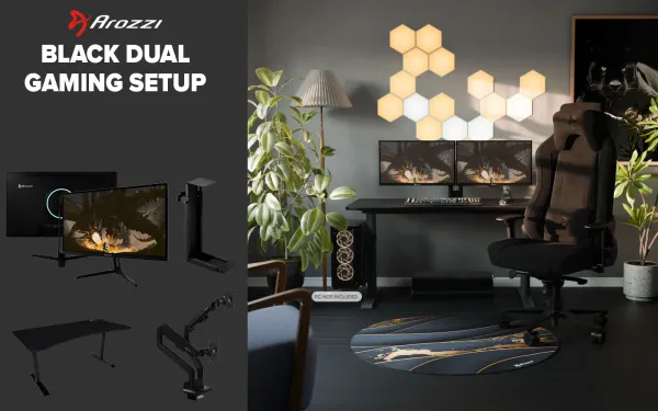 [Black] Arozzi Dual Monitor Gaming Setup