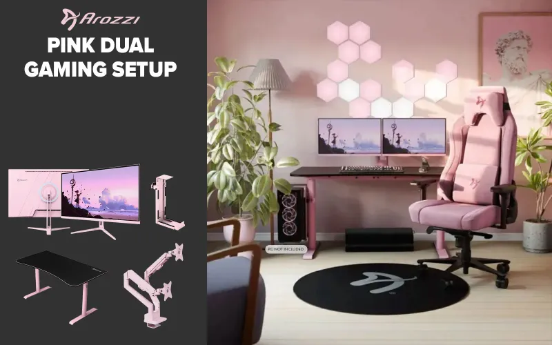 Arozzi Nova 27 Dual Monitor Gaming Setup - Pink, 180Hz, QHD