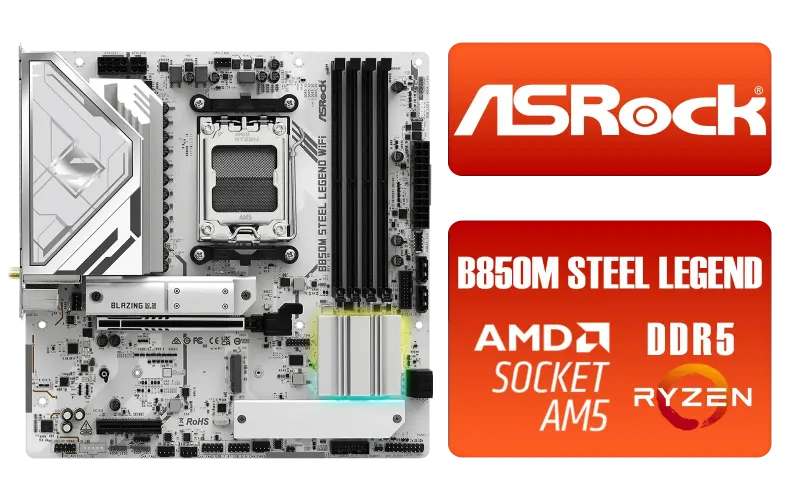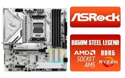 ASRock B850M Steel Legend WiFi AMD Motherboard / Supports AMD Socket AM5 Ryzen™ 9000, 8000 and 7000 Series Processors / AMD B850 Chipset / PCIe Gen5 (Graphics, M.2) / Dual Channel DDR5 / 2.5G LAN & Wi-Fi 7 / BIOS Flashback Button / 90-MXBS20-A0UAYZ
