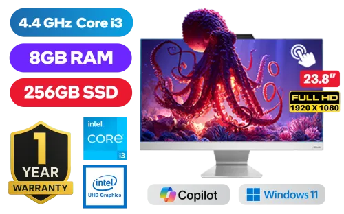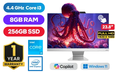[TOUCHSCREEN] ASUS AIO A3402WB Intel Core i3-1215U up to 4.4GHz Processor, 10MB Cache, 6x Cores, 8x Threads / 8GB DDR4 RAM / 256GB Ultra-Fast NVMe SSD / 23.8” FHD (1920 x 1080) Anti-glare Display / Integrated Intel UHD Graphics / Windows 11 Home / Intel AC9462 Wireless LAN / Bluetooth 5.1 / HD 720p Web Camera / 5 x USB Type-A / 1 x USB Type-C / 2 x HDMI / 1x RJ45 / 1x Headphone and Microphone Combo Jack / SonicMaster Audio / FREE ASUS Wireless Keyboard & Mouse / 1 Year Warranty / ASUS Touchscreen AIO A3402WB Core i3-1215U All-in-One PC Deal[TOUCHSCREEN] ASUS AIO A3402WB Intel Core i3-1215U up to 4.4GHz Processor, 10MB Cache, 6x Cores, 8x Threads / 8GB DDR4 RAM / 256GB Ultra-Fast NVMe SSD / 23.8” FHD (1920 x 1080) Anti-glare Display / Integrated Intel UHD Graphics / Windows 11 Home / Intel AC9462 Wireless LAN / Bluetooth 5.1 / HD 720p Web Camera / 5 x USB Type-A / 1 x USB Type-C / 2 x HDMI / 1x RJ45 / 1x Headphone and Microphone Combo Jack / SonicMaster Audio / FREE ASUS Wireless Keyboard & Mouse / 1 Year Warranty / ASUS Touchscreen AIO A3402WB Core i3-1215U All-in-One PC Deal [E3402WBAT-I382W0W] + FREE DELIVERY !
