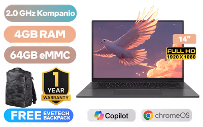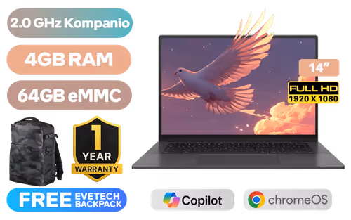 Asus Chromebook CM14 Kompanio 520 up to 2.0GHz Processor, 1MB Cache, 8x Cores / 4GB LPDDR4X RAM / 64GB eMMC / 14" FHD (1920 x 1080) Anti-Glare Display / Integrated ARM Mali-G52 MC2 Graphics / Chrome OS™ / MediaTek Wi-Fi 6 MT79215 Wireless LAN / Bluetooth 5.4 / 720P HD Camera with Privacy Shutter / 1 x USB Type-A / 2x USB Type-C / 1 x Headphone and Microphone Combo Jack / 1x MicroSD Card Reader / Standard Chicklet Keyboard / Built-In Speaker & Microphone / 1 Year Warranty / Asus Chromebook CM14 Kompanio Laptop DealAsus Chromebook CM14 Kompanio 520 up to 2.0GHz Processor, 1MB Cache, 8x Cores / 4GB LPDDR4X RAM / 64GB eMMC / 14" FHD (1920 x 1080) Anti-Glare Display / Integrated ARM Mali-G52 MC2 Graphics / Chrome OS™ / MediaTek Wi-Fi 6 MT79215 Wireless LAN / Bluetooth 5.4 / 720P HD Camera with Privacy Shutter / 1 x USB Type-A / 2x USB Type-C / 1 x Headphone and Microphone Combo Jack / 1x MicroSD Card Reader / Standard Chicklet Keyboard / Built-In Speaker & Microphone / 1 Year Warranty / Asus Chromebook CM14 Kompanio Laptop Deal [CM1402CM2A-NK0242] / [+] GET FREE EVETECH DASH Premium Gaming Backpack+ FREE DELIVERY !