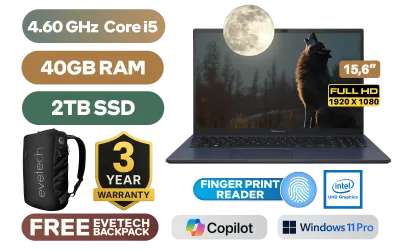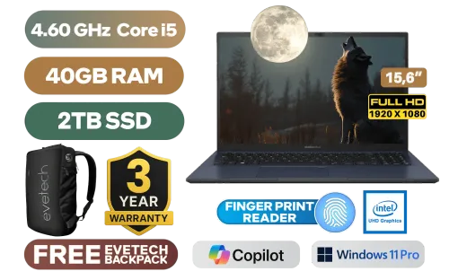 Asus ExpertBook 15 B1502CVA Intel Core i5-1335U up to 4.60GHz Processor, 12MB Cache, 10x Cores, 12x Threads / 40GB DDR4 RAM / 2TB Ultra-Fast NVMe SSD / 15.6" FHD (1920 x 1080) Anti-Glare Display / Integrated Intel® UHD Graphics / <span style="font-size: 20px; color: #00BFFF; font-weight: bold;">Windows 11 Professional (64bit)</span> / Intel® Wi-Fi 6 Wireless LAN / Bluetooth 5.3 / 720p HD camera / 2x USB Type-A / 2 x USB Type-C / 1x HDMI / 1 x Headphone & Microphone Audio Combo Jack / 1x RJ45 / White Backlight Chiclet Keyboard / Fingerprint Reader / Asus ExpertBook 15 B1502CVA Intel Core i5 Laptop DealAsus ExpertBook 15 B1502CVA Intel Core i5-1335U up to 4.60GHz Processor, 12MB Cache, 10x Cores, 12x Threads / 40GB DDR4 RAM / 2TB Ultra-Fast NVMe SSD / 15.6" FHD (1920 x 1080) Anti-Glare Display / Integrated Intel® UHD Graphics / Windows 11 Professional (64bit) / Intel® Wi-Fi 6 Wireless LAN / Bluetooth 5.3 / 720p HD camera / 2x USB Type-A / 2 x USB Type-C / 1x HDMI / 1 x Headphone & Microphone Audio Combo Jack / 1x RJ45 / White Backlight Chiclet Keyboard / Fingerprint Reader / Asus ExpertBook 15 B1502CVA Intel Core i5 Laptop Deal [B1502CVA-I58512B0X/40GB/2TB] / 3 YEARS WARRANTY / [+] GET FREE EVETECH NEO Premium Gaming Backpack+ FREE DELIVERY !