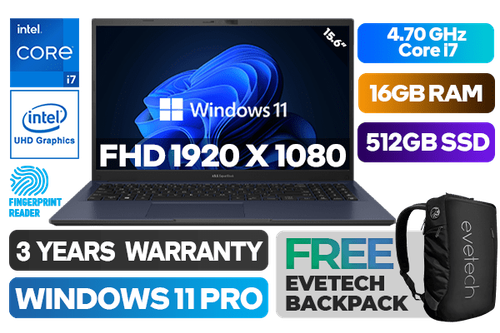 Asus ExpertBook B1 B1502CBA 12th Gen Intel Alder Lake Core i7-1255U up to 4.70GHz Processor, 12MB Cache, 10x Cores, 12x Threads / 16GB DDR4 RAM / 512GB Ultra-Fast NVMe SSD / 15.6" FHD 1920 x 1080 Anti-Glare Display / Integrated Intel® UHD Graphics / <span style="font-size: 20px; color: #00BFFF; font-weight: bold;">Windows 11 Professional (64bit)</span> / No DVD Writer Included / Intel® Wi-Fi 6 Wireless LAN / Bluetooth 5.3 / 720p HD camera / 1x USB-A 2.0 / 1x USB-A 3.2 / 2 x USB 3.2 Type-C / 1x HDMI 1.4 / 1 x Headphone & Microphone Audio Combo Jack / 1x RJ45 / White Backlit Chiclet Keyboard / Fingerprint Reader / Asus ExpertBook B1 B1502CBA Core i7 Laptop DealAsus ExpertBook B1 B1502CBA 12th Gen Intel Alder Lake Core i7-1255U up to 4.70GHz Processor, 12MB Cache, 10x Cores, 12x Threads / 16GB DDR4 RAM / 512GB Ultra-Fast NVMe SSD / 15.6" FHD 1920 x 1080 Anti-Glare Display / Integrated Intel® UHD Graphics / Windows 11 Professional (64bit) / No DVD Writer Included / Intel® Wi-Fi 6 Wireless LAN / Bluetooth 5.3 / 720p HD camera / 1x USB-A 2.0 / 1x USB-A 3.2 / 2 x USB 3.2 Type-C / 1x HDMI 1.4 / 1 x Headphone & Microphone Audio Combo Jack / 1x RJ45 / White Backlit Chiclet Keyboard / Fingerprint Reader / Asus ExpertBook B1 B1502CBA Core i7 Laptop Deal [B1502CBA-I716512B7X] / 3 YEARS WARRANTY / [+] GET FREE EVETECH NEO Premium Gaming Backpack+ FREE DELIVERY !