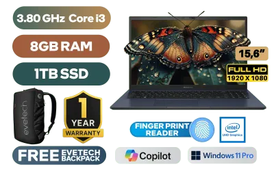 Asus ExpertBook B1 B1502CGA Intel Core i3-N305 up to 3.80GHz Processor, 6MB Cache, 8x Cores, 8x Threads / 8GB DDR4 RAM / 1TB Ultra-Fast NVMe SSD / 15.6" FHD 1920 x 1080 Anti-Glare Display / Integrated Intel® UHD Graphics / <span style="font-size: 20px; color: #00BFFF; font-weight: bold;">Windows 11 Professional (64bit)</span> / No DVD Writer Included / Intel® Wi-Fi 6 Wireless LAN / Bluetooth 5.2 / 720p HD camera / 1x USB-A 2.0 / 1x USB-A 3.2 / 2 x USB 3.2 Type-C / 1x HDMI 1.4 / 1 x Headphone & Microphone Audio Combo Jack / 1x RJ45 / Chiclet Keyboard / Fingerprint Reader / 1 Year Warranty / Asus ExpertBook B1 Core i3 Laptop DealAsus ExpertBook B1 B1502CGA Intel Core i3-N305 up to 3.80GHz Processor, 6MB Cache, 8x Cores, 8x Threads / 8GB DDR4 RAM / 1TB Ultra-Fast NVMe SSD / 15.6" FHD 1920 x 1080 Anti-Glare Display / Integrated Intel® UHD Graphics / Windows 11 Professional (64bit) / No DVD Writer Included / Intel® Wi-Fi 6 Wireless LAN / Bluetooth 5.2 / 720p HD camera / 1x USB-A 2.0 / 1x USB-A 3.2 / 2 x USB 3.2 Type-C / 1x HDMI 1.4 / 1 x Headphone & Microphone Audio Combo Jack / 1x RJ45 / Chiclet Keyboard / Fingerprint Reader / 1 Year Warranty / Asus ExpertBook B1 Core i3 Laptop Deal [B1502CGA-I382B1X/1TB] / [+] GET FREE EVETECH NEO Premium Gaming Backpack+ FREE DELIVERY !