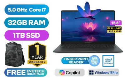 Asus ExpertBook B1 B1503CVA 13th Gen Intel® Core™ i7-1355U up to 5.0GHz Processor, 12MB Cache, 10x Cores, 12x Threads / 32GB DDR5 RAM / 1TB Ultra-Fast NVMe SSD / 15.6" FHD (1920 x 1080) Anti-Glare Display / Integrated Intel® UHD Graphics / <span style="font-size: 20px; color: #00BFFF; font-weight: bold;">Windows 11 Professional (64bit)</span> / Realtek 8852BE WiFi 6 Wireless LAN / Bluetooth 5.4 / 720p HD camera with Privacy Shutter / 2x USB-A / 2 x USB Type-C (DisplayPort) / 1x HDMI / 1 x Headphone & Microphone Combo Jack / 1x RJ45 / Fingerprint Reader / White Backlit Chiclet Keyboard / Audio by Dirac / 1 Year Warranty / Asus ExpertBook B1 B1503CVA Core i7 Laptop DealAsus ExpertBook B1 B1503CVA 13th Gen Intel® Core™ i7-1355U up to 5.0GHz Processor, 12MB Cache, 10x Cores, 12x Threads / 32GB DDR5 RAM / 1TB Ultra-Fast NVMe SSD / 15.6" FHD (1920 x 1080) Anti-Glare Display / Integrated Intel® UHD Graphics / Windows 11 Professional (64bit) / Realtek 8852BE WiFi 6 Wireless LAN / Bluetooth 5.4 / 720p HD camera with Privacy Shutter / 2x USB-A / 2 x USB Type-C (DisplayPort) / 1x HDMI / 1 x Headphone & Microphone Combo Jack / 1x RJ45 / Fingerprint Reader / White Backlit Chiclet Keyboard / Audio by Dirac / 1 Year Warranty / Asus ExpertBook B1 B1503CVA Core i7 Laptop Deal [B1503CVA-I716512B2X/32GB/1TB] / [+] GET FREE EVETECH DASH Premium Gaming Backpack / [+] GET FREE Logitech M185 Wireless Mouse+ FREE DELIVERY !