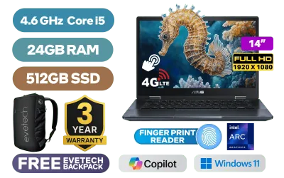 [TOUCHSCREEN] ASUS Expertbook B3 Flip B3402FVA 13th Gen Intel® Core™ i5-1335U up to 4.6GHz Processor, 12MB Cache, 10x Cores, 12x Threads / 24GB DDR4 RAM / 512GB Ultra-Fast NVMe SSD / 14" FHD 1920 x 1080 Wide view Glossy Display With Touch Screen / Integrated Intel® Iris® Xe Graphics / Windows 11 Home (64bit) / Intel AV Stream Camera + HD UVC Webcam / Intel® Wi-Fi 6 AX201 Wireless LAN / Bluetooth 5.3 / 2x USB-A / 2x USB Type-C / 1x HDMI / 1 x Headphone & Microphone Audio Combo Jack / 1x RJ45 / Volume Up & Down Button / Pen Bay / Standard Keyboard With Copilot Key / Fingerprint Reader / Free Asus Stylus Included(On the Laptop Body) / ASUS Expertbook B3 Flip B3402FVA Core i5 Laptop Deal[TOUCHSCREEN] ASUS Expertbook B3 Flip B3402FVA 13th Gen Intel® Core™ i5-1335U up to 4.6GHz Processor, 12MB Cache, 10x Cores, 12x Threads / 24GB DDR4 RAM / 512GB Ultra-Fast NVMe SSD / 14" FHD 1920 x 1080 Wide view Glossy Display With Touch Screen / Integrated Intel® Iris® Xe Graphics / Windows 11 Home (64bit) / Intel AV Stream Camera + HD UVC Webcam / Intel® Wi-Fi 6 AX201 Wireless LAN / Bluetooth 5.3 / 2x USB-A / 2x USB Type-C / 1x HDMI / 1 x Headphone & Microphone Audio Combo Jack / 1x RJ45 / Volume Up & Down Button / Pen Bay / Standard Keyboard With Copilot Key / Fingerprint Reader / Free Asus Stylus Included(On the Laptop Body) / ASUS Expertbook B3 Flip B3402FVA Core i5 Laptop Deal [B3402FVA-I516512B0W/24GB] / [+] GET FREE EVETECH NEO Premium Gaming Backpack / 3 YEARS WARRANTY + FREE DELIVERY !