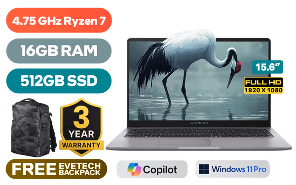 Asus ExpertBook P1 PM1503CDA AMD Ryzen 7 7735HS up to 4.75GHz Processor, 20MB Cache, 8x Cores, 16x Threads / 16GB DDR5 RAM / 512GB Ultra-Fast NVMe SSD / 15.6" FHD (1920 x 1080) Anti-Glare IPS-Level Display / Integrated AMD Radeon Graphics / <span style="font-size: 20px; color: #00BFFF; font-weight: bold;">Windows 11 Professional (64bit)</span> / Realtek RTL8852BE Wifi 6 Wireless LAN / Bluetooth 5.4 / 720p HD Camera / 2x USB Type-A / 2 x USB Type-C (Supports Display / Power Delivery) / 1x HDMI / 1 x Headphone & Microphone Combo Jack / 1x RJ45 / Fingerprint Reader / Asus ExpertBook P1 PM1503CDA AMD Ryzen 7 Professional Laptop DealAsus ExpertBook P1 PM1503CDA AMD Ryzen 7 7735HS up to 4.75GHz Processor, 20MB Cache, 8x Cores, 16x Threads / 16GB DDR5 RAM / 512GB Ultra-Fast NVMe SSD / 15.6" FHD (1920 x 1080) Anti-Glare IPS-Level Display / Integrated AMD Radeon Graphics / Windows 11 Professional (64bit) / Realtek RTL8852BE Wifi 6 Wireless LAN / Bluetooth 5.4 / 720p HD Camera / 2x USB Type-A / 2 x USB Type-C (Supports Display / Power Delivery) / 1x HDMI / 1 x Headphone & Microphone Combo Jack / 1x RJ45 / Fingerprint Reader / Asus ExpertBook P1 PM1503CDA AMD Ryzen 7 Professional Laptop Deal [PM1503CDA-R716512G0X] / 3 YEARS WARRANTY / [+] GET FREE EVETECH DASH Premium Gaming Backpack+ FREE DELIVERY !