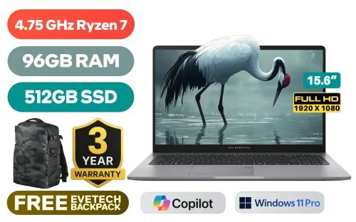 Asus ExpertBook P1 PM1503CDA AMD Ryzen 7 7735HS up to 4.75GHz Processor, 20MB Cache, 8x Cores, 16x Threads / 96GB DDR5 RAM / 512GB Ultra-Fast NVMe SSD / 15.6" FHD (1920 x 1080) Anti-Glare IPS-Level Display / Integrated AMD Radeon Graphics / <span style="font-size: 20px; color: #00BFFF; font-weight: bold;">Windows 11 Professional (64bit)</span> / Realtek RTL8852BE Wifi 6 Wireless LAN / Bluetooth 5.4 / 720p HD Camera / 2x USB Type-A / 2 x USB Type-C (Supports Display / Power Delivery) / 1x HDMI / 1 x Headphone & Microphone Combo Jack / 1x RJ45 / Fingerprint Reader / Asus ExpertBook P1 PM1503CDA AMD Ryzen 7 Professional Laptop DealAsus ExpertBook P1 PM1503CDA AMD Ryzen 7 7735HS up to 4.75GHz Processor, 20MB Cache, 8x Cores, 16x Threads / 96GB DDR5 RAM / 512GB Ultra-Fast NVMe SSD / 15.6" FHD (1920 x 1080) Anti-Glare IPS-Level Display / Integrated AMD Radeon Graphics / Windows 11 Professional (64bit) / Realtek RTL8852BE Wifi 6 Wireless LAN / Bluetooth 5.4 / 720p HD Camera / 2x USB Type-A / 2 x USB Type-C (Supports Display / Power Delivery) / 1x HDMI / 1 x Headphone & Microphone Combo Jack / 1x RJ45 / Fingerprint Reader / Asus ExpertBook P1 PM1503CDA AMD Ryzen 7 Professional Laptop Deal [PM1503CDA-R716512G0X/96GB] / 3 YEARS WARRANTY / [+] GET FREE EVETECH DASH Premium Gaming Backpack+ FREE DELIVERY !