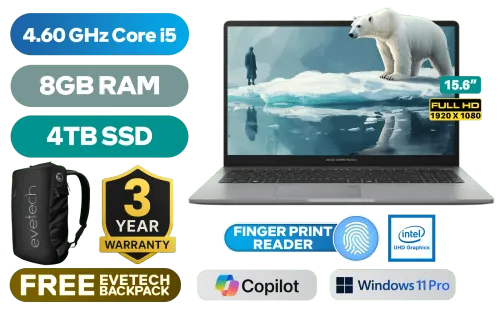 Asus ExpertBook P5 P1503CVA Intel® Core™ i5-13420H up to 4.60GHz Processor, 12MB Cache, 8x Cores, 12x Threads / 8GB DDR5 RAM / 4TB Ultra-Fast NVMe SSD / 15.6" FHD (1920 x 1080) Anti-Glare Display / Integrated Intel UHD Graphics / <span style="font-size: 20px; color: #00BFFF; font-weight: bold;">Windows 11 Professional (64bit)</span> / Realtek RTL8852BE Wifi 6 Wireless LAN / Bluetooth 5.4 / 720p HD Camera with Privacy Shutter / 2x USB Type-A / 2 x USB Type-C (Supports Power Delivery/ DisplayPort) / 1x HDMI / 1 x Headphone & Microphone Combo Jack / 1x RJ45 / Fingerprint Reader / Audio by Dirac / Asus ExpertBook P1 P1503CVA Core i5 Laptop DealAsus ExpertBook P5 P1503CVA Intel® Core™ i5-13420H up to 4.60GHz Processor, 12MB Cache, 8x Cores, 12x Threads / 8GB DDR5 RAM / 4TB Ultra-Fast NVMe SSD / 15.6" FHD (1920 x 1080) Anti-Glare Display / Integrated Intel UHD Graphics / Windows 11 Professional (64bit) / Realtek RTL8852BE Wifi 6 Wireless LAN / Bluetooth 5.4 / 720p HD Camera with Privacy Shutter / 2x USB Type-A / 2 x USB Type-C (Supports Power Delivery/ DisplayPort) / 1x HDMI / 1 x Headphone & Microphone Combo Jack / 1x RJ45 / Fingerprint Reader / Audio by Dirac / Asus ExpertBook P1 P1503CVA Core i5 Laptop Deal [P1503CVA-I58512G1X/4TB] / 3 YEARS WARRANTY / [+] GET FREE EVETECH NEO Premium Gaming Backpack+ FREE DELIVERY !
