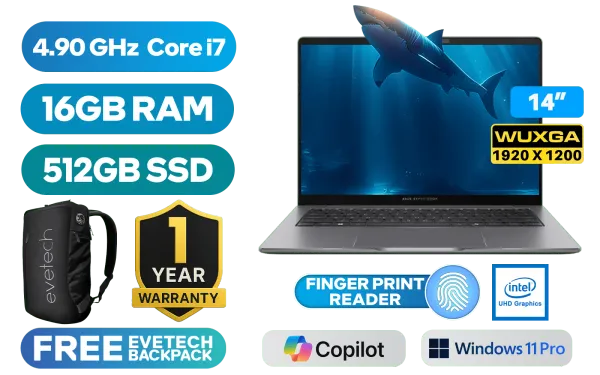 Asus ExpertBook P3 13th Gen Intel Core i7-13620H up to 4.90GHz Processor, 24MB Cache, 10x Cores, 16x Threads / 16GB DDR5 RAM / 512GB Ultra-Fast NVMe SSD / 14" WUXGA (1920 x 1200) Anti-Glare Display / Integrated Intel® UHD Graphics / <span style="font-size: 20px; color: #00BFFF; font-weight: bold;">Windows 11 Professional (64bit)</span> / Realtek 8852BE WiFi 6 Wireless LAN / Bluetooth 5.4 / 1080p FHD IR Camera with Privacy Shutter / 2x USB Type-A / 2x USB Type-C (Support Display / Power Delivery) / 1x HDMI 2.1 / 1 x Headphone & Microphone Audio Combo Jack / 1x RJ45 / White Backlit Chiclet Keyboard / Fingerprint Reader / 1 Year Warranty / Asus ExpertBook P3 Intel Core i7 Laptop DealAsus ExpertBook P3 13th Gen Intel Core i7-13620H up to 4.90GHz Processor, 24MB Cache, 10x Cores, 16x Threads / 16GB DDR5 RAM / 512GB Ultra-Fast NVMe SSD / 14" WUXGA (1920 x 1200) Anti-Glare Display / Integrated Intel® UHD Graphics / Windows 11 Professional (64bit) / Realtek 8852BE WiFi 6 Wireless LAN / Bluetooth 5.4 / 1080p FHD IR Camera with Privacy Shutter / 2x USB Type-A / 2x USB Type-C (Support Display / Power Delivery) / 1x HDMI 2.1 / 1 x Headphone & Microphone Audio Combo Jack / 1x RJ45 / White Backlit Chiclet Keyboard / Fingerprint Reader / 1 Year Warranty / Asus ExpertBook P3 Intel Core i7 Laptop Deal [P3405CVA-I716512G0X] / [+] GET FREE EVETECH NEO Premium Gaming Backpack+ FREE DELIVERY !