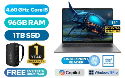 Asus ExpertBook P3 13th Gen Intel® Core™ i5-13420H up to 4.60GHz Processor, 12MB Cache, 8x Cores, 12x Threads / 96GB DDR5 RAM / 1TB Ultra-Fast NVMe SSD / 14" WUXGA (1920 x 1200) Anti-Glare Display / Integrated Intel® UHD Graphics / <span style="font-size: 20px; color: #00BFFF; font-weight: bold;">Windows 11 Professional (64bit)</span> / Realtek 8852BE WiFi 6 Wireless LAN / Bluetooth 5.4 / 1080p FHD Camera with Privacy Shutter / 2x USB Type-A / 2x USB Type-C (DisplayPort / Power Delivery) / 1x HDMI / 1x RJ45 / 1 x Headphone & Microphone Combo Jack / White Backlit Chiclet Keyboard / Fingerprint Reader / 1 Year Warranty / Asus ExpertBook P3 Intel Core i5 Laptop DealAsus ExpertBook P3 13th Gen Intel® Core™ i5-13420H up to 4.60GHz Processor, 12MB Cache, 8x Cores, 12x Threads / 96GB DDR5 RAM / 1TB Ultra-Fast NVMe SSD / 14" WUXGA (1920 x 1200) Anti-Glare Display / Integrated Intel® UHD Graphics / Windows 11 Professional (64bit) / Realtek 8852BE WiFi 6 Wireless LAN / Bluetooth 5.4 / 1080p FHD Camera with Privacy Shutter / 2x USB Type-A / 2x USB Type-C (DisplayPort / Power Delivery) / 1x HDMI / 1x RJ45 / 1 x Headphone & Microphone Combo Jack / White Backlit Chiclet Keyboard / Fingerprint Reader / 1 Year Warranty / Asus ExpertBook P3 Intel Core i5 Laptop Deal [P3405CVA-I516512G0X/96GB/1TB] / [+] GET FREE EVETECH NEO Premium Gaming Backpack / [+] GET FREE Logitech M185 Wireless Mouse+ FREE DELIVERY !