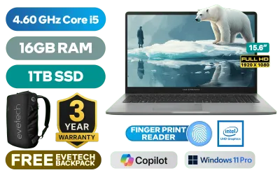 Asus ExpertBook P5 P1503CVA Intel® Core™ i5-13420H up to 4.60GHz Processor, 12MB Cache, 8x Cores, 12x Threads / 16GB DDR5 RAM / 1TB Ultra-Fast NVMe SSD / 15.6" FHD (1920 x 1080) Anti-Glare Display / Integrated Intel UHD Graphics / <span style="font-size: 20px; color: #00BFFF; font-weight: bold;">Windows 11 Professional (64bit)</span> / Realtek RTL8852BE Wifi 6 Wireless LAN / Bluetooth 5.4 / 720p HD Camera with Privacy Shutter / 2x USB Type-A / 2 x USB Type-C (Supports Power Delivery/ DisplayPort) / 1x HDMI / 1 x Headphone & Microphone Combo Jack / 1x RJ45 / Fingerprint Reader / Audio by Dirac / Asus ExpertBook P1 P1503CVA Core i5 Laptop DealAsus ExpertBook P5 P1503CVA Intel® Core™ i5-13420H up to 4.60GHz Processor, 12MB Cache, 8x Cores, 12x Threads / 16GB DDR5 RAM / 1TB Ultra-Fast NVMe SSD / 15.6" FHD (1920 x 1080) Anti-Glare Display / Integrated Intel UHD Graphics / Windows 11 Professional (64bit) / Realtek RTL8852BE Wifi 6 Wireless LAN / Bluetooth 5.4 / 720p HD Camera with Privacy Shutter / 2x USB Type-A / 2 x USB Type-C (Supports Power Delivery/ DisplayPort) / 1x HDMI / 1 x Headphone & Microphone Combo Jack / 1x RJ45 / Fingerprint Reader / Audio by Dirac / Asus ExpertBook P1 P1503CVA Core i5 Laptop Deal [P1503CVA-I58512G1X/16GB/1TB] / 3 YEARS WARRANTY / [+] GET FREE EVETECH NEO Premium Gaming Backpack+ FREE DELIVERY !