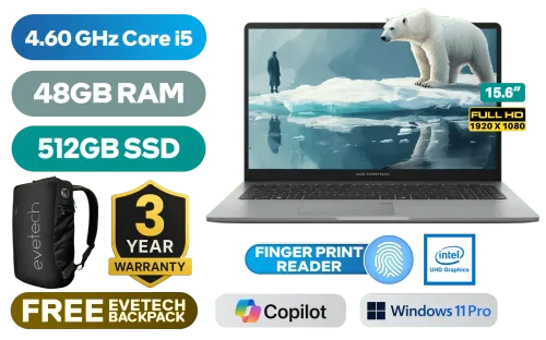 Asus ExpertBook P5 P1503CVA Intel® Core™ i5-13420H up to 4.60GHz Processor, 12MB Cache, 8x Cores, 12x Threads / 48GB DDR5 RAM / 512GB Ultra-Fast NVMe SSD / 15.6" FHD (1920 x 1080) Anti-Glare Display / Integrated Intel UHD Graphics / <span style="font-size: 20px; color: #00BFFF; font-weight: bold;">Windows 11 Professional (64bit)</span> / Realtek RTL8852BE Wifi 6 Wireless LAN / Bluetooth 5.4 / 720p HD Camera with Privacy Shutter / 2x USB Type-A / 2 x USB Type-C (Supports Power Delivery/ DisplayPort) / 1x HDMI / 1 x Headphone & Microphone Combo Jack / 1x RJ45 / Fingerprint Reader / Audio by Dirac / Asus ExpertBook P1 P1503CVA Core i5 Laptop DealAsus ExpertBook P5 P1503CVA Intel® Core™ i5-13420H up to 4.60GHz Processor, 12MB Cache, 8x Cores, 12x Threads / 48GB DDR5 RAM / 512GB Ultra-Fast NVMe SSD / 15.6" FHD (1920 x 1080) Anti-Glare Display / Integrated Intel UHD Graphics / Windows 11 Professional (64bit) / Realtek RTL8852BE Wifi 6 Wireless LAN / Bluetooth 5.4 / 720p HD Camera with Privacy Shutter / 2x USB Type-A / 2 x USB Type-C (Supports Power Delivery/ DisplayPort) / 1x HDMI / 1 x Headphone & Microphone Combo Jack / 1x RJ45 / Fingerprint Reader / Audio by Dirac / Asus ExpertBook P1 P1503CVA Core i5 Laptop Deal [P1503CVA-I58512G1X/48GB] / 3 YEARS WARRANTY / [+] GET FREE EVETECH NEO Premium Gaming Backpack+ FREE DELIVERY !