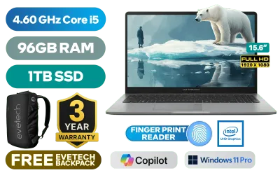 Asus ExpertBook P5 P1503CVA Intel® Core™ i5-13420H up to 4.60GHz Processor, 12MB Cache, 8x Cores, 12x Threads / 96GB DDR5 RAM / 1TB Ultra-Fast NVMe SSD / 15.6" FHD (1920 x 1080) Anti-Glare Display / Integrated Intel UHD Graphics / <span style="font-size: 20px; color: #00BFFF; font-weight: bold;">Windows 11 Professional (64bit)</span> / Realtek RTL8852BE Wifi 6 Wireless LAN / Bluetooth 5.4 / 720p HD Camera with Privacy Shutter / 2x USB Type-A / 2 x USB Type-C (Supports Power Delivery/ DisplayPort) / 1x HDMI / 1 x Headphone & Microphone Combo Jack / 1x RJ45 / Fingerprint Reader / Audio by Dirac / Asus ExpertBook P1 P1503CVA Core i5 Laptop DealAsus ExpertBook P5 P1503CVA Intel® Core™ i5-13420H up to 4.60GHz Processor, 12MB Cache, 8x Cores, 12x Threads / 96GB DDR5 RAM / 1TB Ultra-Fast NVMe SSD / 15.6" FHD (1920 x 1080) Anti-Glare Display / Integrated Intel UHD Graphics / Windows 11 Professional (64bit) / Realtek RTL8852BE Wifi 6 Wireless LAN / Bluetooth 5.4 / 720p HD Camera with Privacy Shutter / 2x USB Type-A / 2 x USB Type-C (Supports Power Delivery/ DisplayPort) / 1x HDMI / 1 x Headphone & Microphone Combo Jack / 1x RJ45 / Fingerprint Reader / Audio by Dirac / Asus ExpertBook P1 P1503CVA Core i5 Laptop Deal [P1503CVA-I58512G1X/96GB/1TB] / 3 YEARS WARRANTY / [+] GET FREE EVETECH NEO Premium Gaming Backpack+ FREE DELIVERY !
