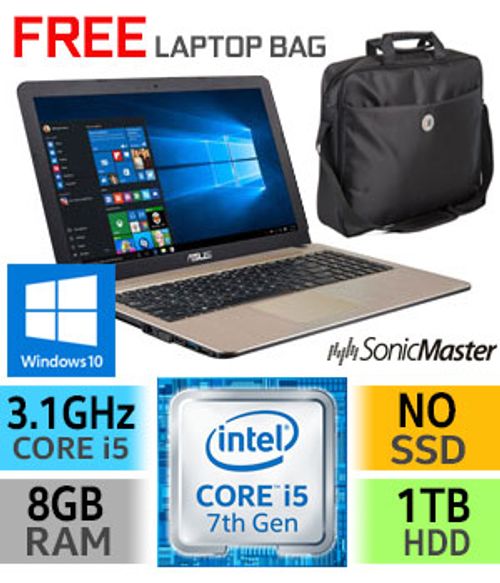 ASUS F541UA Intel 7th Gen Kabylake Core i5-7200U up to 3.10GHz CPU / 8GB DDR4 RAM / 1TB Hard Drive / 15.6" HD 1366x768 Anti-Glare LED Display / Intel HD graphics 620 / Windows 10 64bit / Super Multi DVD RW / VGA Web Camera / 802.11 bgn Wireless LAN / Bluetooth v4.0 / SDXC Card Reader / USB 3.1 Type-C / VGA/HDMI / FREE Notebook Carry Bag / 1 Year Warranty / Core i5 Laptop [F541UA-GQ1733T/8GB] + FREE DELIVERY !