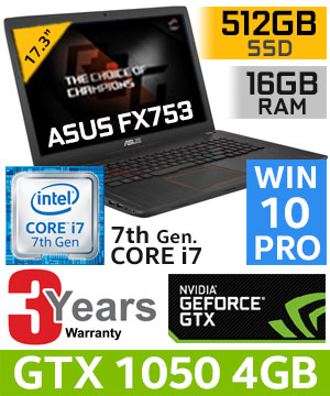 ASUS FX753VD Core i7 GTX 1050 Gaming Laptop With 512GB SSD And 16GB RAM - Free Shipping