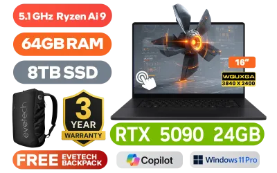[TOUCHSCREEN] ASUS ProArt P16 H7606WX Studiobook AMD Ryzen™ AI 9 HX 370 up to 5.1GHz Processor, 36MB Cache, 12x Cores, 24x Threads / 64GB LPDDR5X RAM / 8TB Ultra-Fast NVMe SSD / 16" WQUXGA (3840 x 2400) OLED Touchscreen Display / NVIDIA 50 Series GeForce RTX 5090 24GB GDDR7 Dedicated Graphics / <span style="font-size: 18px; color: blue;">Windows 11 Professional (64bit)</span> / FHD IR Camera / Bluetooth 5.4 / Mediatek Wi-Fi 7 MT7925 Wireless LAN / 2x USB Type-A / 2x USB Type C (Supports Power Delivery / DisplayPort) / 1x HDMI / 1x Microphone and Headphone Combo jack / 1x SD Express Card Reader / White Backlit Keyboard / Built-in speaker with Smart Amp Technology / Free ASUS Backpack / ASUS ProArt P16 H7606WX StudioBook Ryzen AI 9 RTX 5090 Laptop Deal[TOUCHSCREEN] ASUS ProArt P16 H7606WX Studiobook AMD Ryzen™ AI 9 HX 370 up to 5.1GHz Processor, 36MB Cache, 12x Cores, 24x Threads / 64GB LPDDR5X RAM / 8TB Ultra-Fast NVMe SSD / 16" WQUXGA (3840 x 2400) OLED Touchscreen Display / NVIDIA 50 Series GeForce RTX 5090 24GB GDDR7 Dedicated Graphics / Windows 11 Professional (64bit) / FHD IR Camera / Bluetooth 5.4 / Mediatek Wi-Fi 7 MT7925 Wireless LAN / 2x USB Type-A / 2x USB Type C (Supports Power Delivery / DisplayPort) / 1x HDMI / 1x Microphone and Headphone Combo jack / 1x SD Express Card Reader / White Backlit Keyboard / Built-in speaker with Smart Amp Technology / Free ASUS Backpack / ASUS ProArt P16 H7606WX StudioBook Ryzen AI 9 RTX 5090 Laptop Deal [H7606WX-O96440B0X/8TB] / 3 YEARS WARRANTY / [+] GET FREE EVETECH NEO Premium Gaming Backpack / [+]Get Resident Evil Requiem with select GeForce RTX 50 Series (Standard Edition)+ FREE DELIVERY !