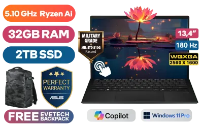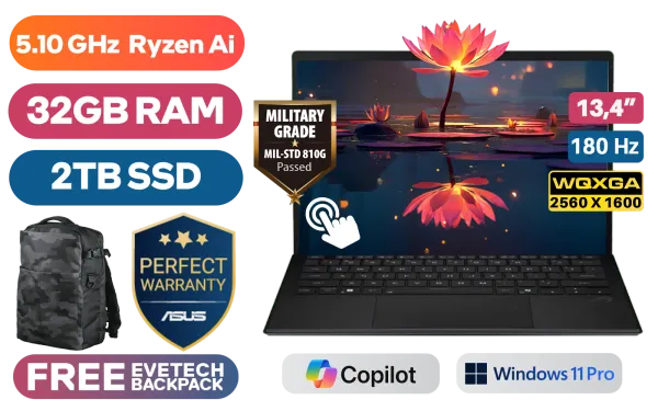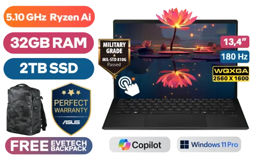 Asus ROG Flow Z13 GZ302EA AMD Ryzen™ AI MAX+ 395 up to 5.10GHz Processor, 80MB Cache, 16x Cores, 21x Threads / 32GB LPDDR5X RAM / 2TB Ultra-Fast NVMe SSD / 13.4" WQXGA (2560 x 1600) 180Hz Touch Screen Display / AMD Radeon Integrated Graphics / <span style="font-size: 20px; color: #00BFFF; font-weight: bold;">Windows 11 Professional (64bit)</span> / 13MP Camera and 5MP IR Camera / Wi-Fi 7 Wireless LAN / Bluetooth 5.4 / 1 x USB Type-A / 2 x USB Type-C / 1 x HDMI / 1 x Headphone and Microphone Audio Combo Jack / 1 x MicroSD Card Reader / Backlit Chiclet Keyboard 1-Zone RGB / 2x 2W dual-force with Smart Amp Technology / Asus Sleeve / Asus Pen / Asus ROG Flow Z13 GZ302 Ryzen™ AI MAX+ LaptopAsus ROG Flow Z13 GZ302EA AMD Ryzen™ AI MAX+ 395 up to 5.10GHz Processor, 80MB Cache, 16x Cores, 21x Threads / 32GB LPDDR5X RAM / 2TB Ultra-Fast NVMe SSD / 13.4" WQXGA (2560 x 1600) 180Hz Touch Screen Display / AMD Radeon Integrated Graphics / Windows 11 Professional (64bit) / 13MP Camera and 5MP IR Camera / Wi-Fi 7 Wireless LAN / Bluetooth 5.4 / 1 x USB Type-A / 2 x USB Type-C / 1 x HDMI / 1 x Headphone and Microphone Audio Combo Jack / 1 x MicroSD Card Reader / Backlit Chiclet Keyboard 1-Zone RGB / 2x 2W dual-force with Smart Amp Technology / Asus Sleeve / Asus Pen / Asus ROG Flow Z13 GZ302 Ryzen™ AI MAX+ Laptop [GZ302EA-RU043X/2TB] / 3 YEARS WARRANTY / [+] GET FREE EVETECH DASH Premium Gaming Backpack / [+] Get Crimson Desert with select AMD Mobile products+ FREE DELIVERY !