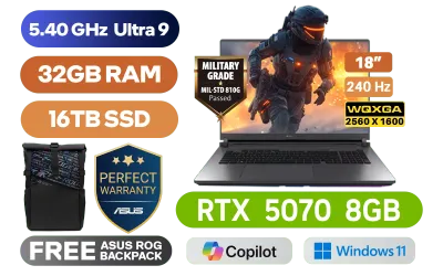 [G-SYNC] ASUS ROG STRIX 18 G815LP Intel® Core™ Ultra 9-275HX up to 5.40GHz Processor, 36MB Cache, 24x Cores, 24x Threads / 32GB DDR5 RAM / 16TB Ultra-Fast PCIe NVMe SSD / 18" WQXGA (2560 x 1600) 240Hz Anti-Glare IPS-Level Display / NVIDIA 50 Series GeForce RTX 5070 8GB GDDR7 Graphics Card / Windows 11 Home (64bit) / 1080P FHD IR Camera / Tri-Band Wi-Fi 7 Wireless LAN / Dual Bluetooth 5.4 / 3x USB Type-A / 2x USB Type-C (Thunderbolt™ 4 with support for DisplayPort™ / power delivery / G-SYNC) / 1 x HDMI / 1 x Headphone & Microphone Audio Combo Jack / 1x RJ45 / Per-key RGB Backlit Chicklet Keyboard / 2 speakers with Dolby Atmos / FREE ASUS ROG Backpack / ASUS ROG STRIX 18 G815LP Ultra 9 RTX 5070 Gaming Laptop Deal[G-SYNC] ASUS ROG STRIX 18 G815LP Intel® Core™ Ultra 9-275HX up to 5.40GHz Processor, 36MB Cache, 24x Cores, 24x Threads / 32GB DDR5 RAM / 16TB Ultra-Fast PCIe NVMe SSD / 18" WQXGA (2560 x 1600) 240Hz Anti-Glare IPS-Level Display / NVIDIA 50 Series GeForce RTX 5070 8GB GDDR7 Graphics Card / Windows 11 Home (64bit) / 1080P FHD IR Camera / Tri-Band Wi-Fi 7 Wireless LAN / Dual Bluetooth 5.4 / 3x USB Type-A / 2x USB Type-C (Thunderbolt™ 4 with support for DisplayPort™ / power delivery / G-SYNC) / 1 x HDMI / 1 x Headphone & Microphone Audio Combo Jack / 1x RJ45 / Per-key RGB Backlit Chicklet Keyboard / 2 speakers with Dolby Atmos / FREE ASUS ROG Backpack / ASUS ROG STRIX 18 G815LP Ultra 9 RTX 5070 Gaming Laptop Deal [G815LP-U91610G0W/32GB/16TB] / 3 YEARS WARRANTY / [+]Get Resident Evil: Requiem with select GeForce RTX 50 Series (Standard Edition)+ FREE DELIVERY !