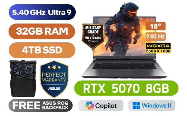 [G-SYNC] ASUS ROG STRIX 18 G815LP Intel® Core™ Ultra 9-275HX up to 5.40GHz Processor, 36MB Cache, 24x Cores, 24x Threads / 32GB DDR5 RAM / 4TB Ultra-Fast PCIe NVMe SSD / 18" WQXGA (2560 x 1600) 240Hz Anti-Glare IPS-Level Display / NVIDIA 50 Series GeForce RTX 5070 8GB GDDR7 Graphics Card / Windows 11 Home (64bit) / 1080P FHD IR Camera / Tri-Band Wi-Fi 7 Wireless LAN / Dual Bluetooth 5.4 / 3x USB Type-A / 2x USB Type-C (Thunderbolt™ 4 with support for DisplayPort™ / power delivery / G-SYNC) / 1 x HDMI / 1 x Headphone & Microphone Audio Combo Jack / 1x RJ45 / Per-key RGB Backlit Chicklet Keyboard / 2 speakers with Dolby Atmos / FREE ASUS ROG Backpack / ASUS ROG STRIX 18 G815LP Ultra 9 RTX 5070 Gaming Laptop Deal[G-SYNC] ASUS ROG STRIX 18 G815LP Intel® Core™ Ultra 9-275HX up to 5.40GHz Processor, 36MB Cache, 24x Cores, 24x Threads / 32GB DDR5 RAM / 4TB Ultra-Fast PCIe NVMe SSD / 18" WQXGA (2560 x 1600) 240Hz Anti-Glare IPS-Level Display / NVIDIA 50 Series GeForce RTX 5070 8GB GDDR7 Graphics Card / Windows 11 Home (64bit) / 1080P FHD IR Camera / Tri-Band Wi-Fi 7 Wireless LAN / Dual Bluetooth 5.4 / 3x USB Type-A / 2x USB Type-C (Thunderbolt™ 4 with support for DisplayPort™ / power delivery / G-SYNC) / 1 x HDMI / 1 x Headphone & Microphone Audio Combo Jack / 1x RJ45 / Per-key RGB Backlit Chicklet Keyboard / 2 speakers with Dolby Atmos / FREE ASUS ROG Backpack / ASUS ROG STRIX 18 G815LP Ultra 9 RTX 5070 Gaming Laptop Deal [G815LP-U91610G0W/32GB/4TB] / 3 YEARS WARRANTY / [+]Get Resident Evil: Requiem with select GeForce RTX 50 Series (Standard Edition)+ FREE DELIVERY !