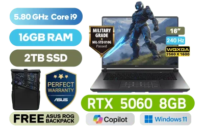 ASUS ROG Strix G16 Intel Core i9 14900HX up to 5.80GHz Processor, 36MB Cache, 24x Cores, 32x Threads / 16GB DDR5 RAM / 2TB Ultra-Fast NVMe SSD / 16" WQXGA (2560 x 1600) 240Hz Refresh Rate Anti-Glare IPS-Level ROG Nebula Display / NVIDIA 50 Series GeForce RTX 5060 8GB GDDR7 Graphics Card / Windows 11 Home (64bit) / 1080P FHD IR Camera / Intel Wi-Fi 7 BE200 Wireless LAN / Bluetooth 5.4 / 3 x USB Type-A / 2x USB Type-C / 1 x HDMI / 1 x Headphone and Microphone Audio Combo Jack / 1x RJ-45 / Per-Key RGB Backlit Keyboard / Dolby Atmos Audio with Smart Amp Technology / FREE ASUS ROG Backpack / ASUS ROG Strix G16 G615JMR Core i9 RTX 5060 Gaming Laptop DealASUS ROG Strix G16 Intel Core i9 14900HX up to 5.80GHz Processor, 36MB Cache, 24x Cores, 32x Threads / 16GB DDR5 RAM / 2TB Ultra-Fast NVMe SSD / 16" WQXGA (2560 x 1600) 240Hz Refresh Rate Anti-Glare IPS-Level ROG Nebula Display / NVIDIA 50 Series GeForce RTX 5060 8GB GDDR7 Graphics Card / Windows 11 Home (64bit) / 1080P FHD IR Camera / Intel Wi-Fi 7 BE200 Wireless LAN / Bluetooth 5.4 / 3 x USB Type-A / 2x USB Type-C / 1 x HDMI / 1 x Headphone and Microphone Audio Combo Jack / 1x RJ-45 / Per-Key RGB Backlit Keyboard / Dolby Atmos Audio with Smart Amp Technology / FREE ASUS ROG Backpack / ASUS ROG Strix G16 G615JMR Core i9 RTX 5060 Gaming Laptop Deal [G615JMR-I91610G0W/2TB] / 3 YEARS WARRANTY + FREE DELIVERY !