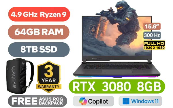 Dolby Atmos Audio / ASUS ROG Strix G15 G513RS Ryzen 9 RTX 3080 Gaming Laptop Deal [G513RS-93210G0W/64GB/8TB] / 3 YEARS WARRANTY / [+] GET FREE EVETECH NEO Premium Gaming Backpack+ FREE DELIVERY !