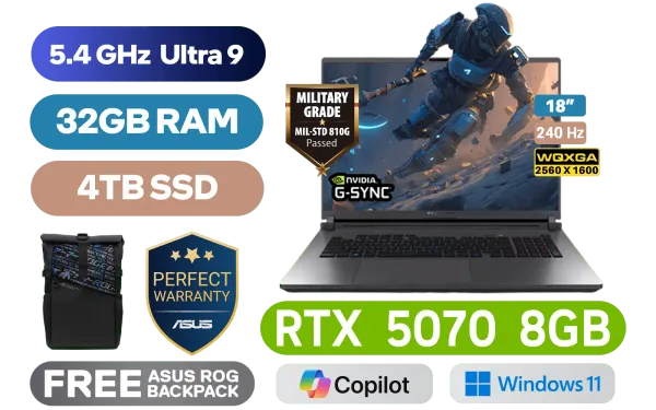 [G-SYNC] ASUS ROG STRIX G18 G815LP Intel® Core™ Ultra 9-275HX up to 5.4GHz Processor, 76MB Cache, 24x Cores, 24x Threads / 32GB DDR5 RAM / 4TB Ultra-Fast PCIe NVMe SSD / 18" WQXGA (2560x1600) 240Hz IPS-Level Display / NVIDIA 50 Series GeForce RTX 5070 8GB GDDR7 Graphics Card / Windows 11 Home (64bit) / 1080P FHD IR Camera / Tri-Band Wi-Fi 7 Wireless LAN / Dual Bluetooth 5.4 / 3x USB Type-A / 2x USB Type-C (Support Thunderbolt™ 4 / DisplayPort / Power Delivery) / 1 x HDMI / 1 x Headphone & Microphone Combo Jack / 1x RJ45 / RGB Backlit Keyboard / 2 speakers with Dolby Atmos / Free ASUS ROG Backpack / ASUS ROG STRIX G18 G815LP Ultra 9 RTX 5070 Laptop Deal[G-SYNC] ASUS ROG STRIX G18 G815LP Intel® Core™ Ultra 9-275HX up to 5.4GHz Processor, 76MB Cache, 24x Cores, 24x Threads / 32GB DDR5 RAM / 4TB Ultra-Fast PCIe NVMe SSD / 18" WQXGA (2560x1600) 240Hz IPS-Level Display / NVIDIA 50 Series GeForce RTX 5070 8GB GDDR7 Graphics Card / Windows 11 Home (64bit) / 1080P FHD IR Camera / Tri-Band Wi-Fi 7 Wireless LAN / Dual Bluetooth 5.4 / 3x USB Type-A / 2x USB Type-C (Support Thunderbolt™ 4 / DisplayPort / Power Delivery) / 1 x HDMI / 1 x Headphone & Microphone Combo Jack / 1x RJ45 / RGB Backlit Keyboard / 2 speakers with Dolby Atmos / Free ASUS ROG Backpack / ASUS ROG STRIX G18 G815LP Ultra 9 RTX 5070 Laptop Deal [G815LP-U93210G0W/4TB] / [+]Get Resident Evil: Requiem with select GeForce RTX 50 Series (Standard Edition) / 3 YEARS WARRANTY + FREE DELIVERY !