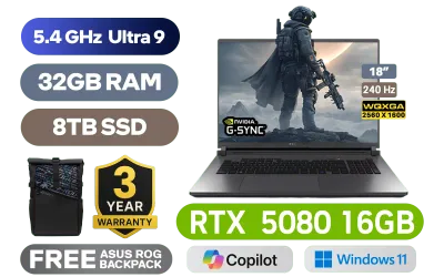 [G-SYNC] ASUS ROG STRIX G18 G815LW Intel® Core™ Ultra 9-275HX up to 5.4GHz Processor, 76MB Cache, 24x Cores, 24x Threads / 32GB DDR5 RAM / 8TB Ultra-Fast PCIe NVMe SSD / 18" WQXGA (2560x1600) 240Hz IPS-Level Display / NVIDIA 50 Series GeForce RTX 5080 16GB GDDR7 Graphics Card / Windows 11 Home (64bit) / 1080P FHD IR Camera / Intel WiFi 7 BE200 Wireless LAN / Bluetooth 5.4 / 3x USB Type-A / 2x USB Type-C (Support Thunderbolt 4 / DisplayPort / Power Delivery) / 1 x HDMI / 1 x Headphone & Microphone Combo Jack / 1x RJ45 / RGB Backlit Keyboard / 2 speakers with Dolby Atmos / Free ASUS ROG Backpack / ASUS ROG STRIX G18 G815LW Ultra 9 RTX 5080 Laptop Deal[G-SYNC] ASUS ROG STRIX G18 G815LW Intel® Core™ Ultra 9-275HX up to 5.4GHz Processor, 76MB Cache, 24x Cores, 24x Threads / 32GB DDR5 RAM / 8TB Ultra-Fast PCIe NVMe SSD / 18" WQXGA (2560x1600) 240Hz IPS-Level Display / NVIDIA 50 Series GeForce RTX 5080 16GB GDDR7 Graphics Card / Windows 11 Home (64bit) / 1080P FHD IR Camera / Intel WiFi 7 BE200 Wireless LAN / Bluetooth 5.4 / 3x USB Type-A / 2x USB Type-C (Support Thunderbolt 4 / DisplayPort / Power Delivery) / 1 x HDMI / 1 x Headphone & Microphone Combo Jack / 1x RJ45 / RGB Backlit Keyboard / 2 speakers with Dolby Atmos / Free ASUS ROG Backpack / ASUS ROG STRIX G18 G815LW Ultra 9 RTX 5080 Laptop Deal [G815LW-U93210G0W/8TB] / 3 YEARS WARRANTY / [+]Get Resident Evil Requiem with select GeForce RTX 50 Series (Standard Edition)+ FREE DELIVERY !