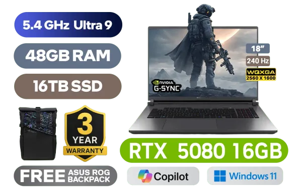 [G-SYNC] ASUS ROG STRIX G18 G815LW Intel® Core™ Ultra 9-275HX up to 5.4GHz Processor, 76MB Cache, 24x Cores, 24x Threads / 48GB DDR5 RAM / 16TB Ultra-Fast PCIe NVMe SSD / 18" WQXGA (2560x1600) 240Hz IPS-Level Display / NVIDIA 50 Series GeForce RTX 5080 16GB GDDR7 Graphics Card / Windows 11 Home (64bit) / 1080P FHD IR Camera / Intel WiFi 7 BE200 Wireless LAN / Bluetooth 5.4 / 3x USB Type-A / 2x USB Type-C (Support Thunderbolt 4 / DisplayPort / Power Delivery) / 1 x HDMI / 1 x Headphone & Microphone Combo Jack / 1x RJ45 / RGB Backlit Keyboard / 2 speakers with Dolby Atmos / Free ASUS ROG Backpack / ASUS ROG STRIX G18 G815LW Ultra 9 RTX 5080 Laptop Deal[G-SYNC] ASUS ROG STRIX G18 G815LW Intel® Core™ Ultra 9-275HX up to 5.4GHz Processor, 76MB Cache, 24x Cores, 24x Threads / 48GB DDR5 RAM / 16TB Ultra-Fast PCIe NVMe SSD / 18" WQXGA (2560x1600) 240Hz IPS-Level Display / NVIDIA 50 Series GeForce RTX 5080 16GB GDDR7 Graphics Card / Windows 11 Home (64bit) / 1080P FHD IR Camera / Intel WiFi 7 BE200 Wireless LAN / Bluetooth 5.4 / 3x USB Type-A / 2x USB Type-C (Support Thunderbolt 4 / DisplayPort / Power Delivery) / 1 x HDMI / 1 x Headphone & Microphone Combo Jack / 1x RJ45 / RGB Backlit Keyboard / 2 speakers with Dolby Atmos / Free ASUS ROG Backpack / ASUS ROG STRIX G18 G815LW Ultra 9 RTX 5080 Laptop Deal [G815LW-U93210G0W/48GB/16TB] / 3 YEARS WARRANTY / [+]Get Resident Evil Requiem with select GeForce RTX 50 Series (Standard Edition)+ FREE DELIVERY !