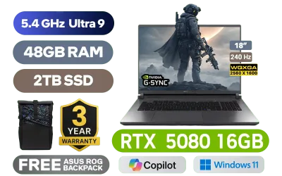 [G-SYNC] ASUS ROG STRIX G18 G815LW Intel® Core™ Ultra 9-275HX up to 5.4GHz Processor, 76MB Cache, 24x Cores, 24x Threads / 48GB DDR5 RAM / 2TB Ultra-Fast PCIe NVMe SSD / 18" WQXGA (2560x1600) 240Hz IPS-Level Display / NVIDIA 50 Series GeForce RTX 5080 16GB GDDR7 Graphics Card / Windows 11 Home (64bit) / 1080P FHD IR Camera / Intel WiFi 7 BE200 Wireless LAN / Bluetooth 5.4 / 3x USB Type-A / 2x USB Type-C (Support Thunderbolt 4 / DisplayPort / Power Delivery) / 1 x HDMI / 1 x Headphone & Microphone Combo Jack / 1x RJ45 / RGB Backlit Keyboard / 2 speakers with Dolby Atmos / Free ASUS ROG Backpack / ASUS ROG STRIX G18 G815LW Ultra 9 RTX 5080 Laptop Deal[G-SYNC] ASUS ROG STRIX G18 G815LW Intel® Core™ Ultra 9-275HX up to 5.4GHz Processor, 76MB Cache, 24x Cores, 24x Threads / 48GB DDR5 RAM / 2TB Ultra-Fast PCIe NVMe SSD / 18" WQXGA (2560x1600) 240Hz IPS-Level Display / NVIDIA 50 Series GeForce RTX 5080 16GB GDDR7 Graphics Card / Windows 11 Home (64bit) / 1080P FHD IR Camera / Intel WiFi 7 BE200 Wireless LAN / Bluetooth 5.4 / 3x USB Type-A / 2x USB Type-C (Support Thunderbolt 4 / DisplayPort / Power Delivery) / 1 x HDMI / 1 x Headphone & Microphone Combo Jack / 1x RJ45 / RGB Backlit Keyboard / 2 speakers with Dolby Atmos / Free ASUS ROG Backpack / ASUS ROG STRIX G18 G815LW Ultra 9 RTX 5080 Laptop Deal [G815LW-U93210G0W/48GB/2TB] / 3 YEARS WARRANTY / [+]Get Resident Evil Requiem with select GeForce RTX 50 Series (Standard Edition)+ FREE DELIVERY !