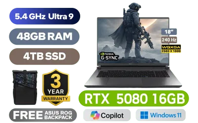 [G-SYNC] ASUS ROG STRIX G18 G815LW Intel® Core™ Ultra 9-275HX up to 5.4GHz Processor, 76MB Cache, 24x Cores, 24x Threads / 48GB DDR5 RAM / 4TB Ultra-Fast PCIe NVMe SSD / 18" WQXGA (2560x1600) 240Hz IPS-Level Display / NVIDIA 50 Series GeForce RTX 5080 16GB GDDR7 Graphics Card / Windows 11 Home (64bit) / 1080P FHD IR Camera / Intel WiFi 7 BE200 Wireless LAN / Bluetooth 5.4 / 3x USB Type-A / 2x USB Type-C (Support Thunderbolt 4 / DisplayPort / Power Delivery) / 1 x HDMI / 1 x Headphone & Microphone Combo Jack / 1x RJ45 / RGB Backlit Keyboard / 2 speakers with Dolby Atmos / Free ASUS ROG Backpack / ASUS ROG STRIX G18 G815LW Ultra 9 RTX 5080 Laptop Deal[G-SYNC] ASUS ROG STRIX G18 G815LW Intel® Core™ Ultra 9-275HX up to 5.4GHz Processor, 76MB Cache, 24x Cores, 24x Threads / 48GB DDR5 RAM / 4TB Ultra-Fast PCIe NVMe SSD / 18" WQXGA (2560x1600) 240Hz IPS-Level Display / NVIDIA 50 Series GeForce RTX 5080 16GB GDDR7 Graphics Card / Windows 11 Home (64bit) / 1080P FHD IR Camera / Intel WiFi 7 BE200 Wireless LAN / Bluetooth 5.4 / 3x USB Type-A / 2x USB Type-C (Support Thunderbolt 4 / DisplayPort / Power Delivery) / 1 x HDMI / 1 x Headphone & Microphone Combo Jack / 1x RJ45 / RGB Backlit Keyboard / 2 speakers with Dolby Atmos / Free ASUS ROG Backpack / ASUS ROG STRIX G18 G815LW Ultra 9 RTX 5080 Laptop Deal [G815LW-U93210G0W/48GB/4TB] / 3 YEARS WARRANTY / [+]Get Resident Evil Requiem with select GeForce RTX 50 Series (Standard Edition)+ FREE DELIVERY !